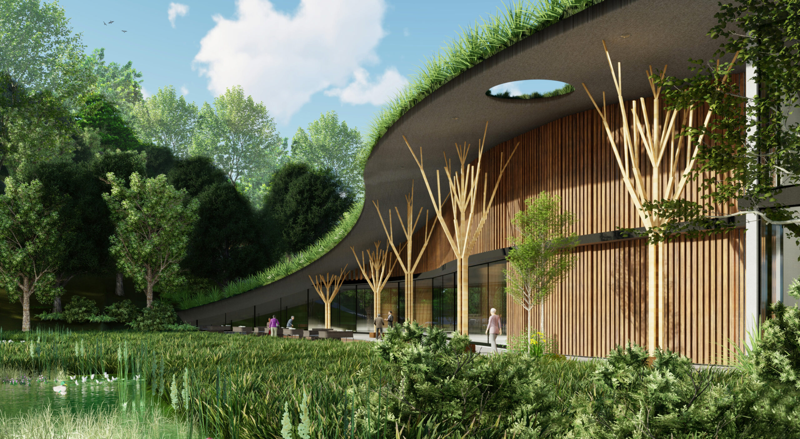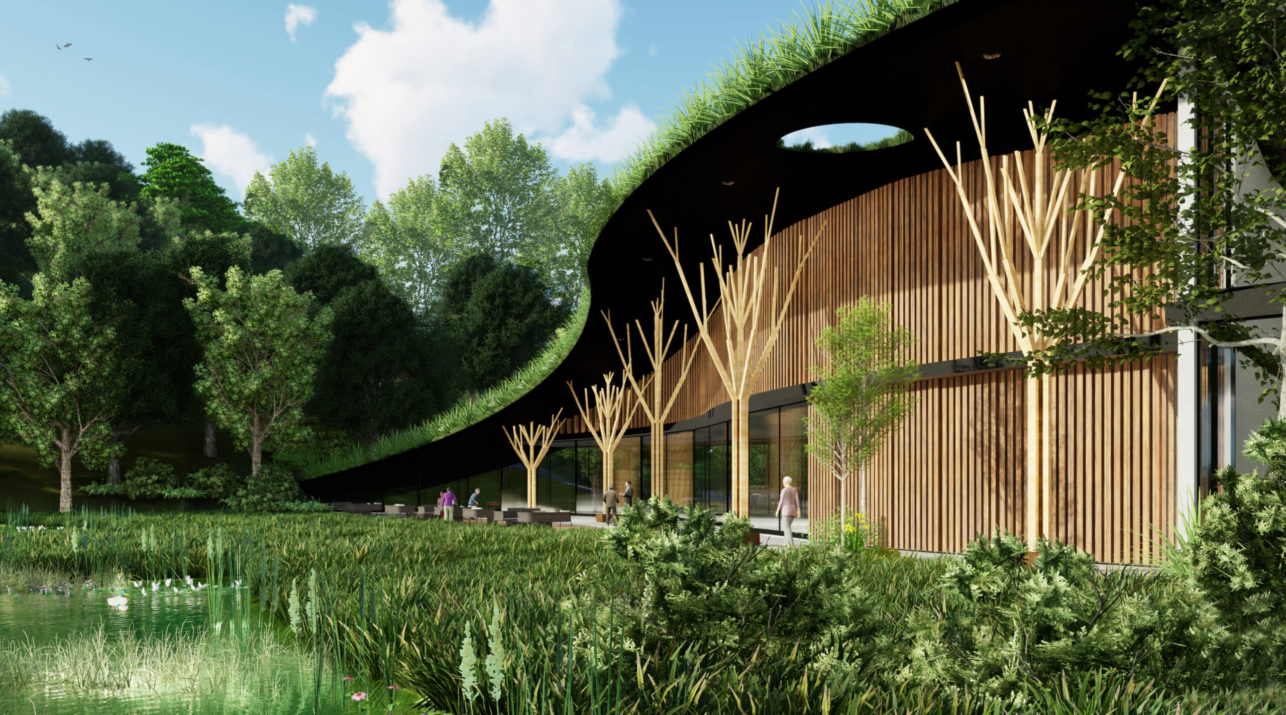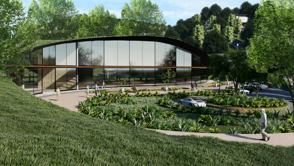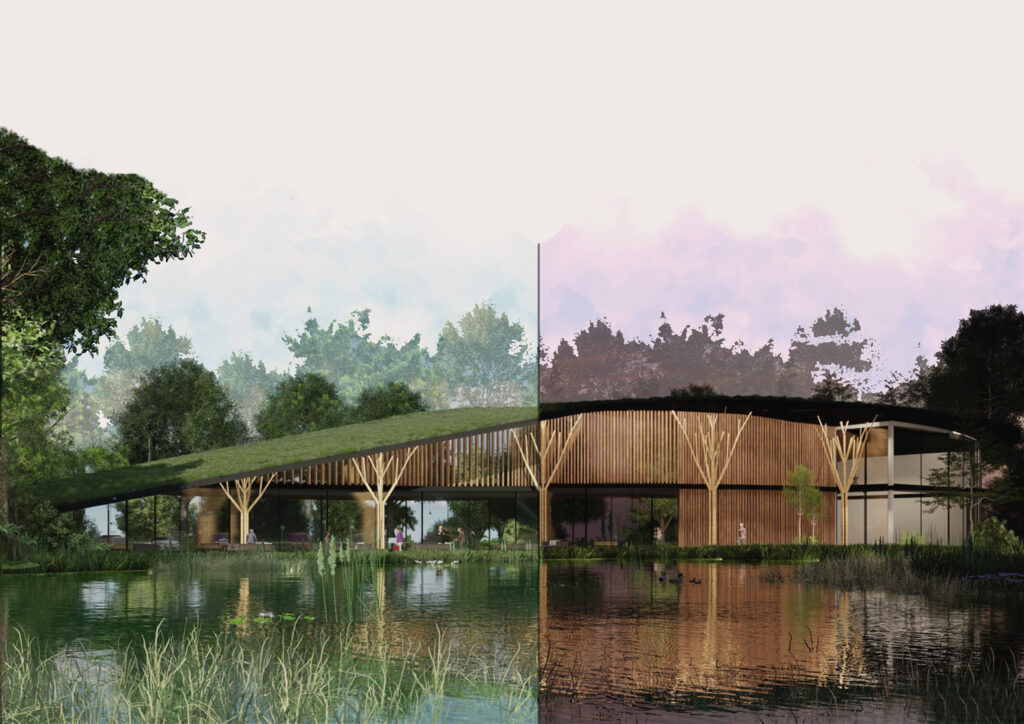 A concept for a community clubhouse in a retirement village. This design was inspired by organic architecture that seamlessly blends with the surrounding landscape. Natural materials, large windows, overhangs and structures that mirror the elements of nature, create a sense of being immersed in the outdoors even while inside.
